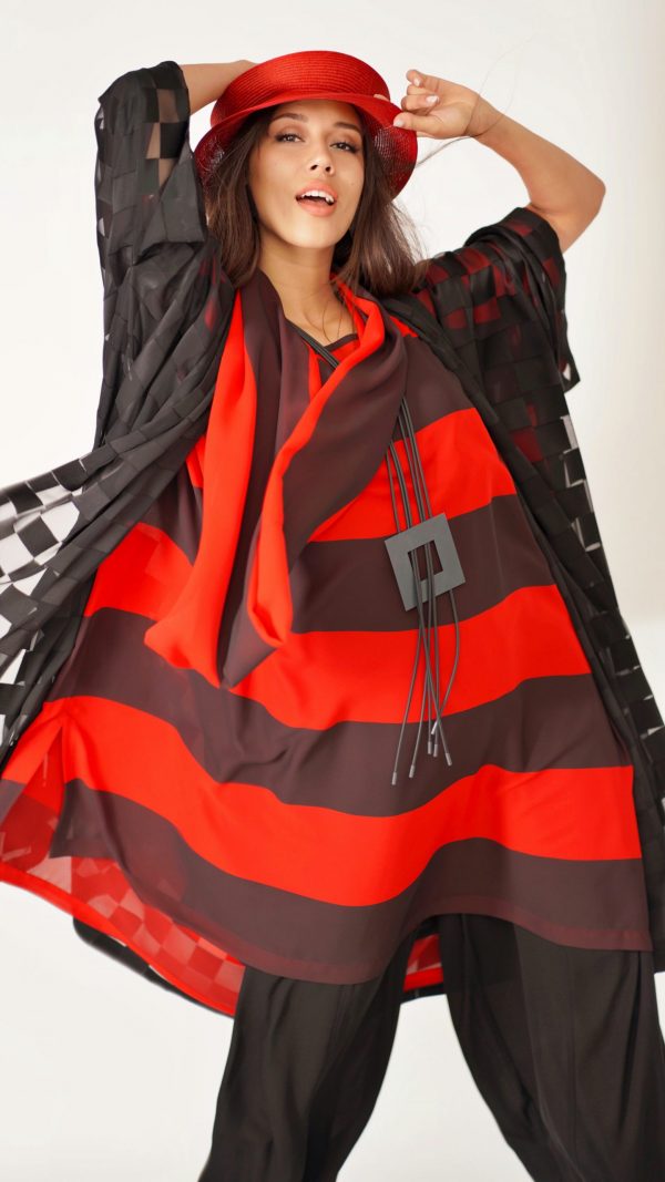 Modelle/Grössen: Oberteile: One Size, Länge zw. 80 bis 100 cm, weit geschnitten, mit und ohne Ärmel