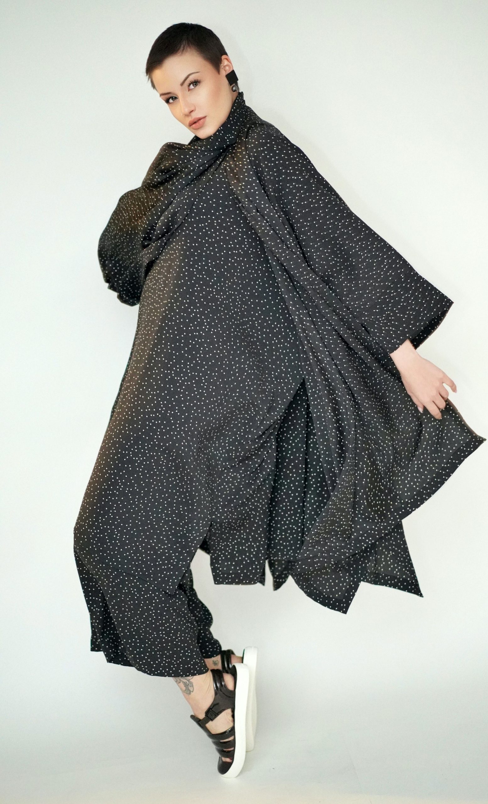 Modelle/Grössen: Blusen/Oberteile: One Size, Länge zw. 80 bis 100 cm, weit geschnitten, Rundhals oder V-Ausschnitt, mit und ohne Ärmel; Hosen: Breite, gerade Beine, ca. 95 cm lang, mit Gummizug, Grössen auf Anfrage; ‹Harem› (bauchige Beine, gegen unten verengt), ca. 95 cm lang, Grössen auf Anfrage Gilets/Westen: One Size, weit geschnitten, 80 bis 100 cm lang, mit oder ohne Kragen; Jacken: One Size, weit geschnitten, 80 bis 105 cm lang, mit Steh- oder Schalkragen; Schals: ca. 200 cm lang und weite Rollkragen/Schalkragen