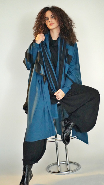 Poncho: glatt gestrickt, uni und gestreift, One Size , 90 cm lang, 120 cm breit, vorne offen